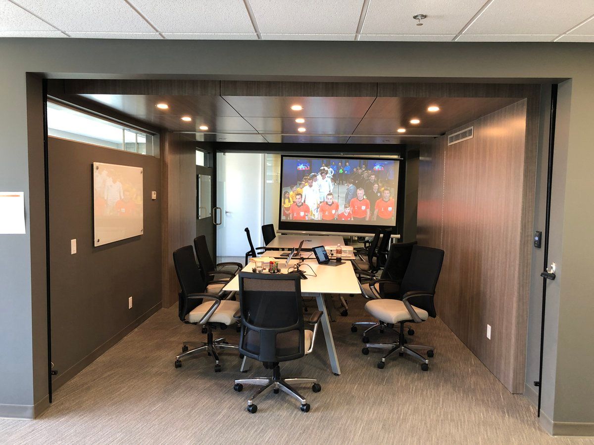 In the office boardroom (it is 11am), in Canada, with my British co-workers (and all of Twitter!)