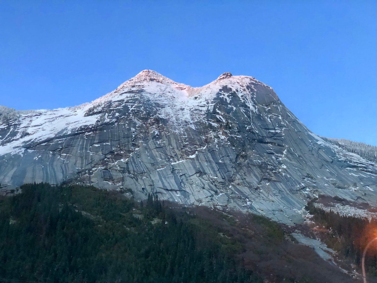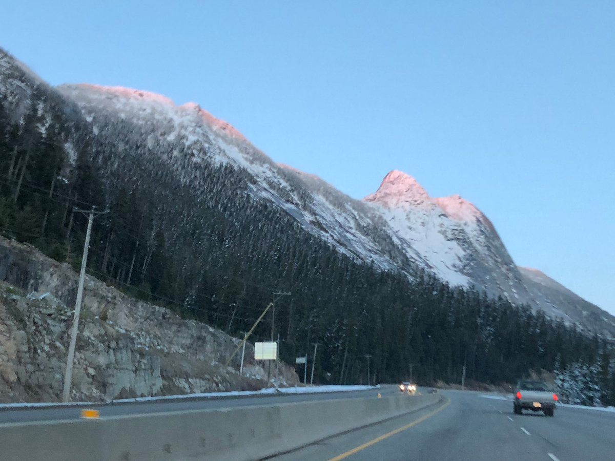 Driving home through the Coquihalla the setting sun turned the newly snowy peaks pink.