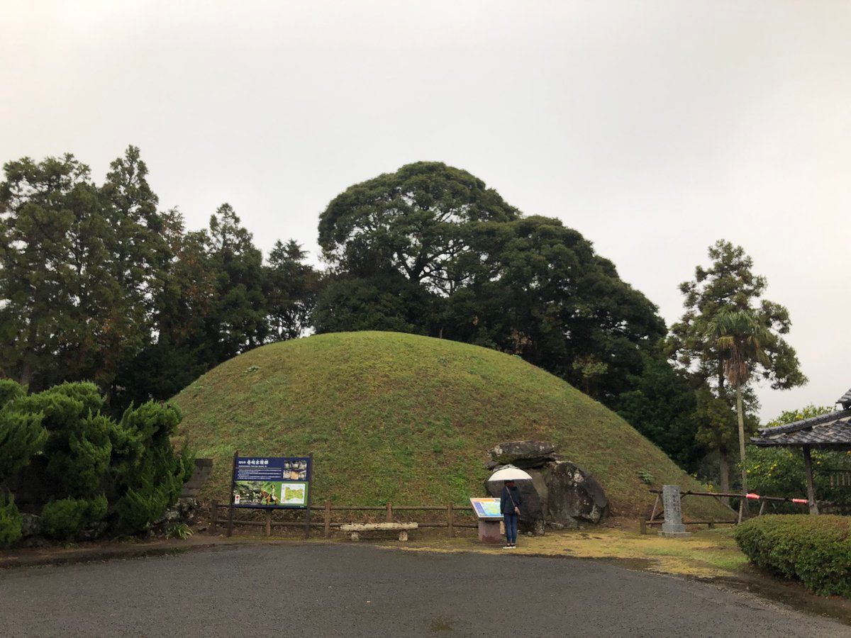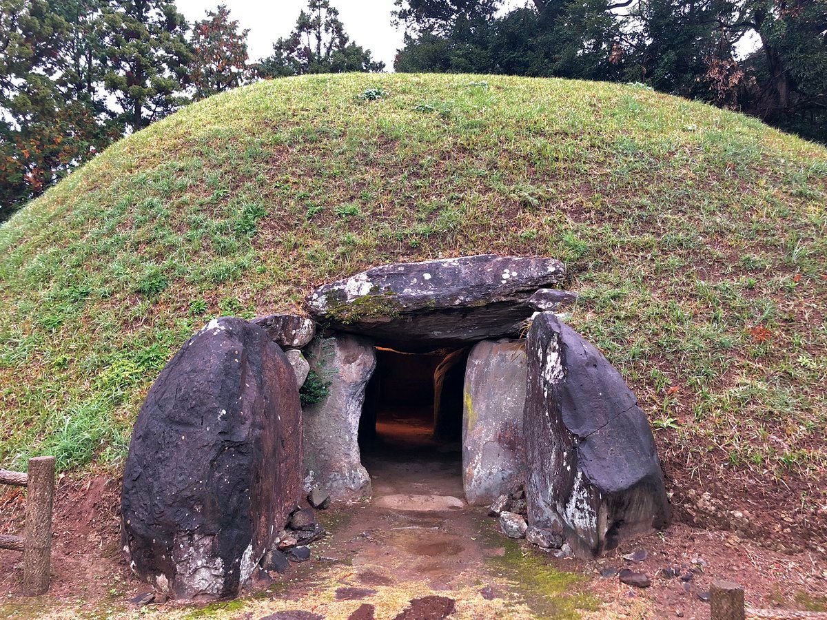 After our parfait we stopped by a 7th C burial mound. #ikijima #壱岐 has about 300 of these Yamato-era mounds, many you can just walk into. The ceiling is super low, and bad for my claustrophobia. The coffin in this one is open and is really small!
