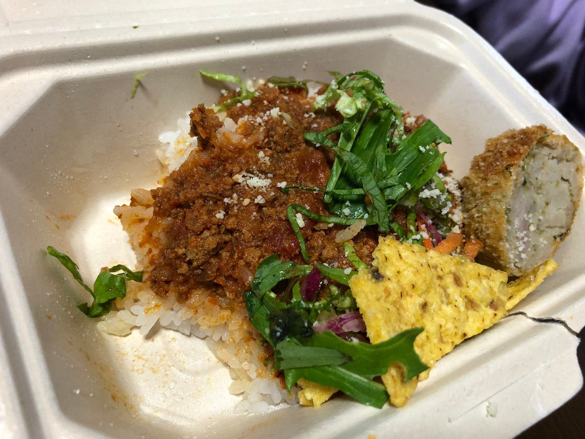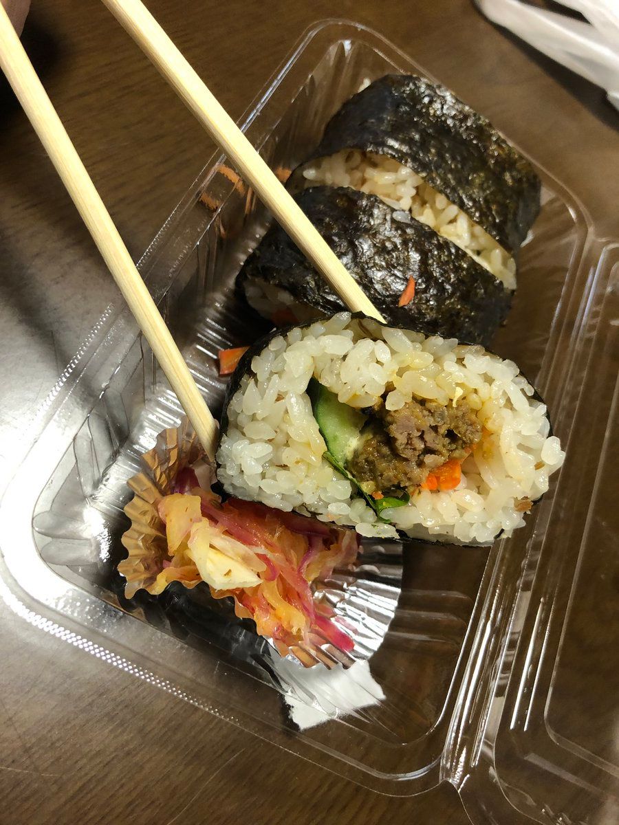 Spicy rolls, taco rice, apple pie, Iki beef sandwiches