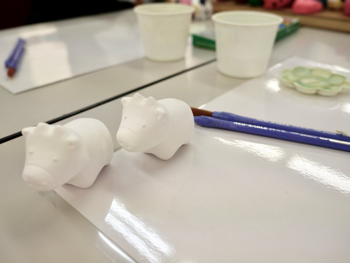 Today’s adventure with the kids: painting little cows in preparation for the New Year! #zodiac #十二支 🏳️ BEFORE → AFTER 🏳️🌈 (Also pictured: a collection of zodiac animals for inspiration)