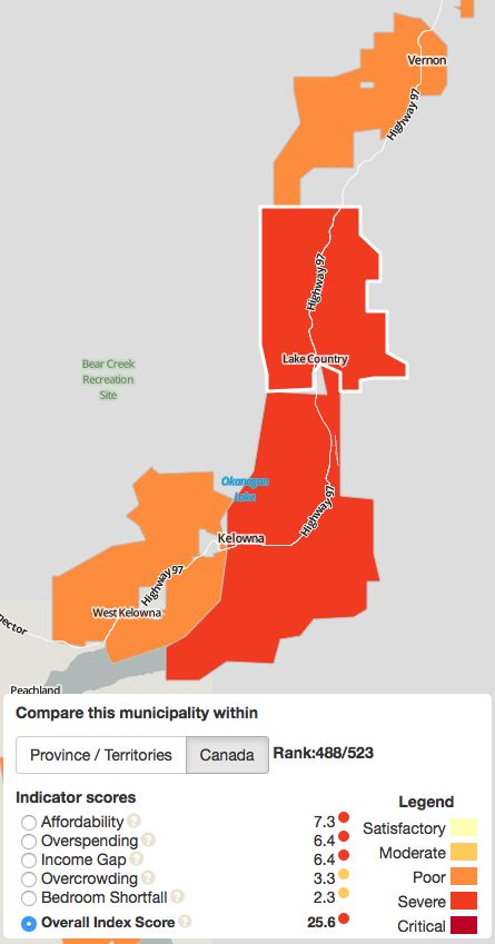 #Kelowna very high on the crisis index for #affordablehousing. 25% spend more than 1/2 of income on rent