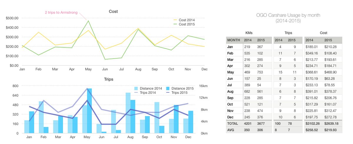 data with distances & number of trips
