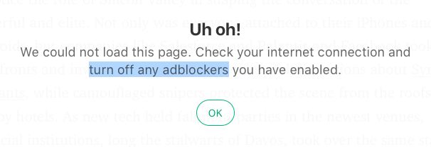 Merely clicking HOME for any Medium blog gives this warning. Basic function… broken by design. /cc