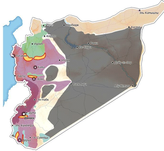 : Those small yellow areas are where Russia believes the #Syria ceasefire applies, acc to state media.