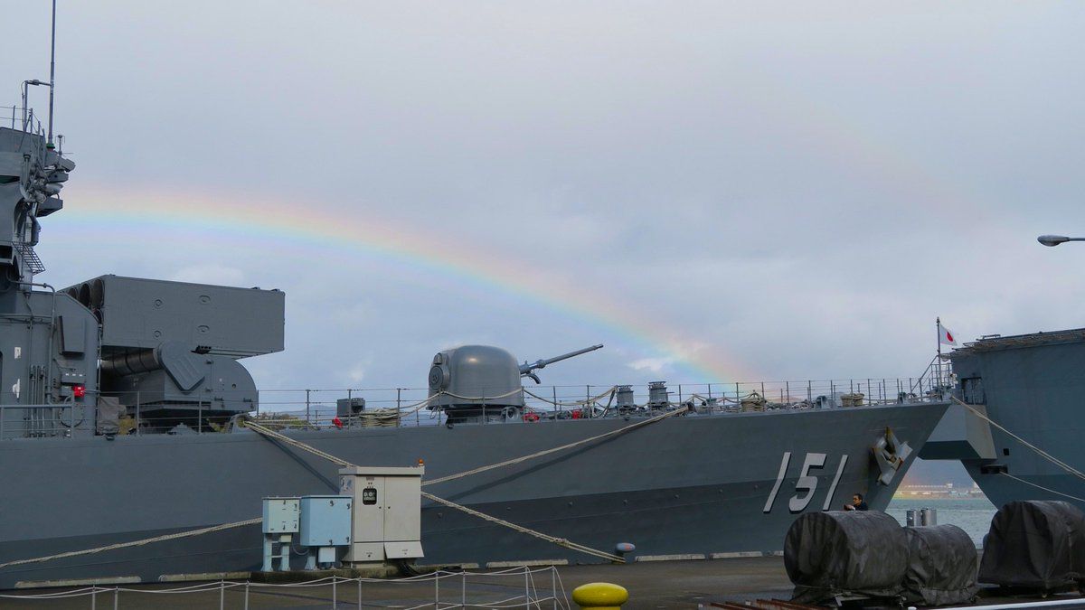 Because of the rainy weather this weekend we saw a ton of rainbows. The best by far was the one we saw was over these navy ships.