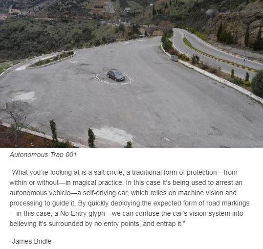 : Using salt circle runes to trap an A.I. car is possibly the most cyberpunk thing ever.